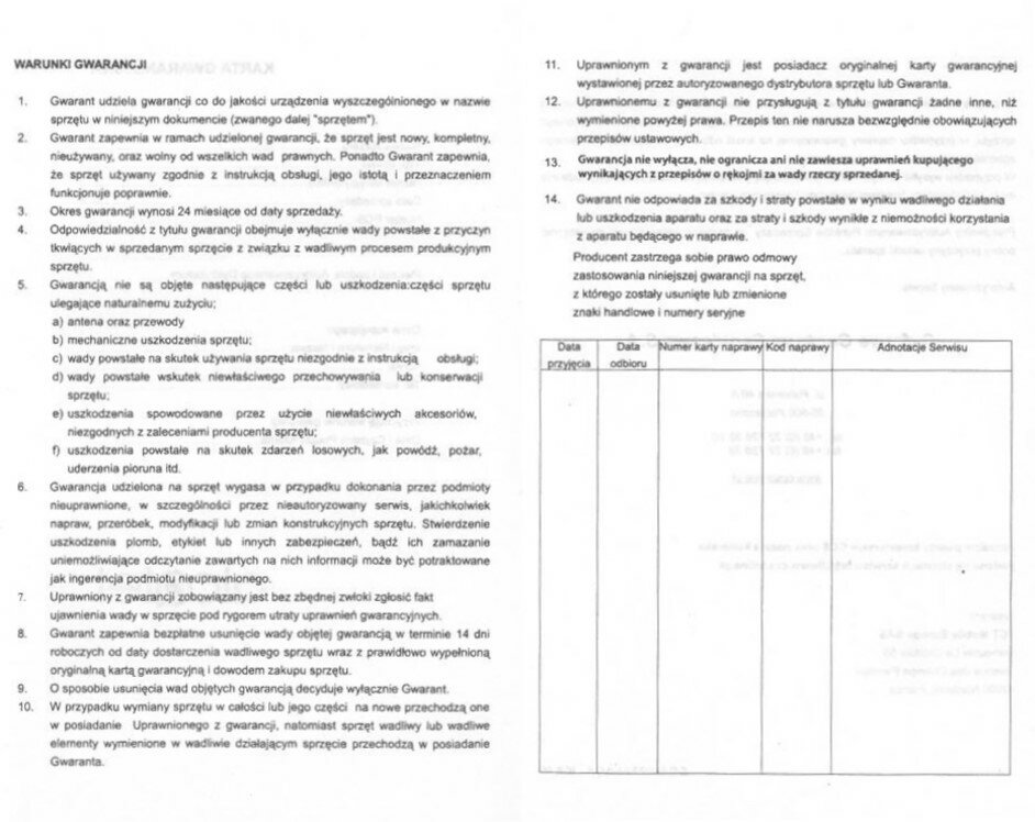 Wsparcie serwisowe nie obejmuje działań osób trzecich lub innych wad niewynikających z uszkodzenia fabrycznego. W przypadki innych usterek lub uszkodzeń gwarant nie może zapewnić poprawności działania naszego urządzenia. Są to najczęściej uszkodzenia powstałe z winy klienta lub na wskutek działań czynników atmosferycznych. Wszystkie tego typu czynniki wskazano bezpośrednio w punkcie 5. Sam gwarant nie ponosi również odpowiedzialności za dodatkowe oprogramowanie lub inne akcesoria firm trzecich. Są to standardowe informacje, które znajdziemy również w konkurencyjnych kartach gwarancyjnych. W sytuacji, jeśli Autoryzowane Centrum Serwisowe znajdzie wady fabryczne, gwarant deklaruje nam usunięcie 14-dniowe i bezpłatne usunięcie usterki. Warunkiem jest oczywiście prawidłowo wypełniona karta gwarancyjna telefonów Alcatel. Jest to kolejny punkt, który możemy użyć przy ewentualnych reklamacjach. W karcie producent deklaruje czas wykonania swojego zobowiązania, o którym decyduje producent w porozumieniu z serwisem CCS, firmą zajmująca się naprawami telefonów Alcatel.