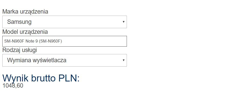Warto zwrócić uwagę, że ceny wymiany wyświetlacza w serwisach Samsunga nie są stałe. Dla odmiany jeden z serwisów centralnych (firma CTDI) oferuje wymianę modułu wyświetlacza do telefonu Samsung Galaxy Note 9 za 1048 zł brutto. Serwis nie podaje czy jest to kwota z robocizną, jednak według naszych informacji wszystko wskazuje na to, że nie. Dla odmiany firma CCS, jako kolejny punkt centralny napraw urządzeń Samsung podaje kwotę 1097 zł brutto. Tutaj również nie mamy podanych kosztów robocizny, dlatego musimy liczyć się ze znacznie większą ceną.