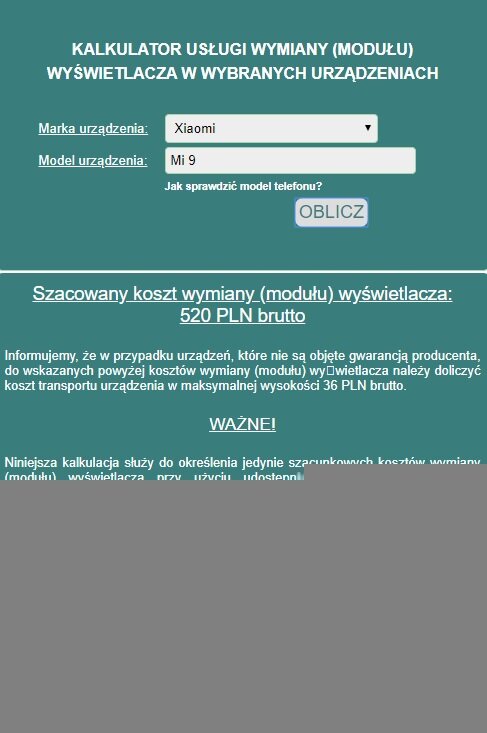 Porównanie ceny naprawy urządzenia powinniśmy zacząć od sprawdzenia aktualnych cen zakupu sprzętu. Rynek sprzedażowy w tej kwestii jest bardzo rozbity. Urządzenie ciężko dostać już w dużych dyskontach elektroniki, dlatego ceny możemy porównać na podstawie nieco mniejszych sklepów działających głównie w obszarze internetu. Jak się okazuje Xiaomi Mi 9 możemy jeszcze kupić (po prawie roku od premiery w Polsce) za około 1200 – 1800 zł między innymi na stronie mi-home.pl. Nie będziemy dyskutować, czy to dobra cena, naszym zadaniem jest sprawdzenie, czy obecna cena urządzenia względem wymiany wyświetlacza w serwisie producenta jest jeszcze opłacalna. Wszystko wskazuje na to, że tak. Według kalkulatora serwisu CCS koszt wymiany ekranu w telefonie Xiaomi Mi 9 wynosi 520 zł brutto. Do tej ceny będziemy musieli doliczyć jeszcze koszty usługi, która w przypadku serwisu CCS może nas wynieść 66 zł. Nie wykluczone, że zostaną nam również doliczone koszty wysyłki. W takim przypadku możemy spodziewać się ostatecznego rozrachunku w kwocie 622 zł (przy założeniu, że korzystamy tylko z transportu CCS). Po przełożeniu to na cenę 1800 zł widać, że telefon warto jeszcze naprawiać.