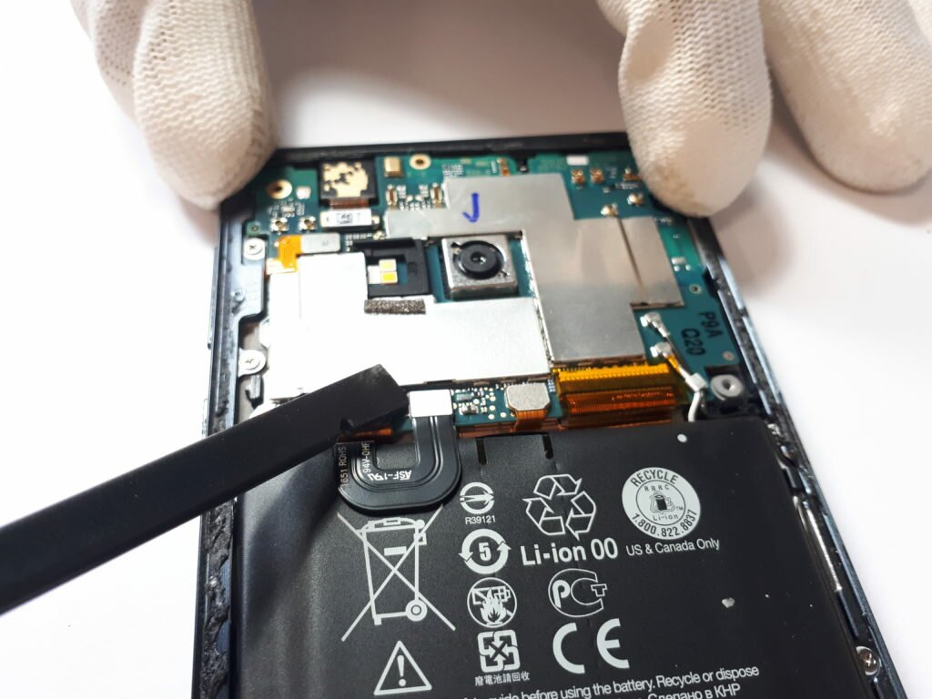 Do tej czynności warto użyć metalowego otwieraka, którego właściwością jest giętkość. Wsuwamy go w szczeliny po prawej i po lewej stronie próbując go wsunąć i stopniowo unosić baterię. Czynność należy powtarzać do momentu całkowitego zdemontowania baterii. W trakcie próby demontażu można podgrzać jeszcze baterię w szczególności szczeliny co zmiękczy klej i ułatwi całkowite zdemontowanie akumulatora.