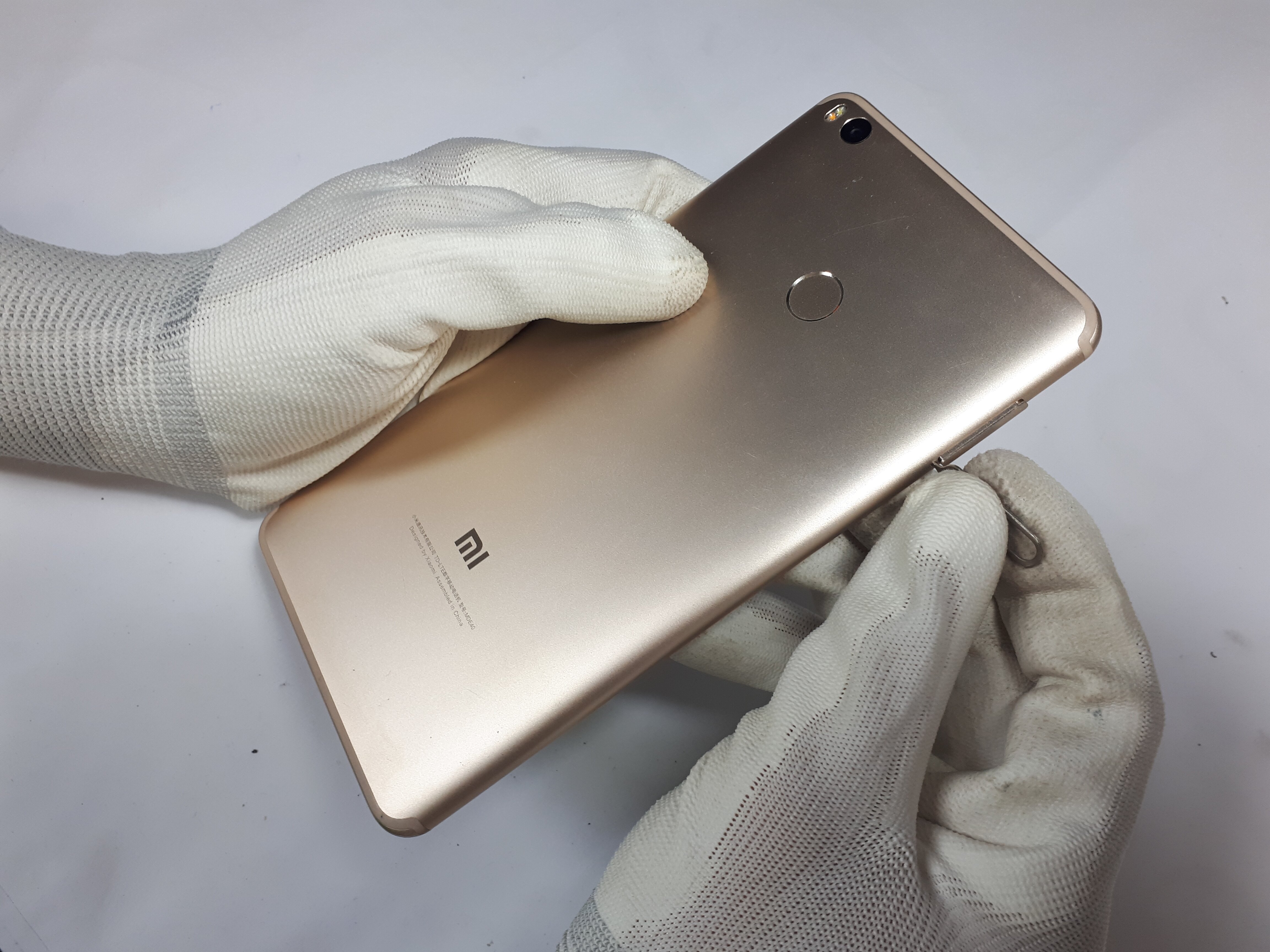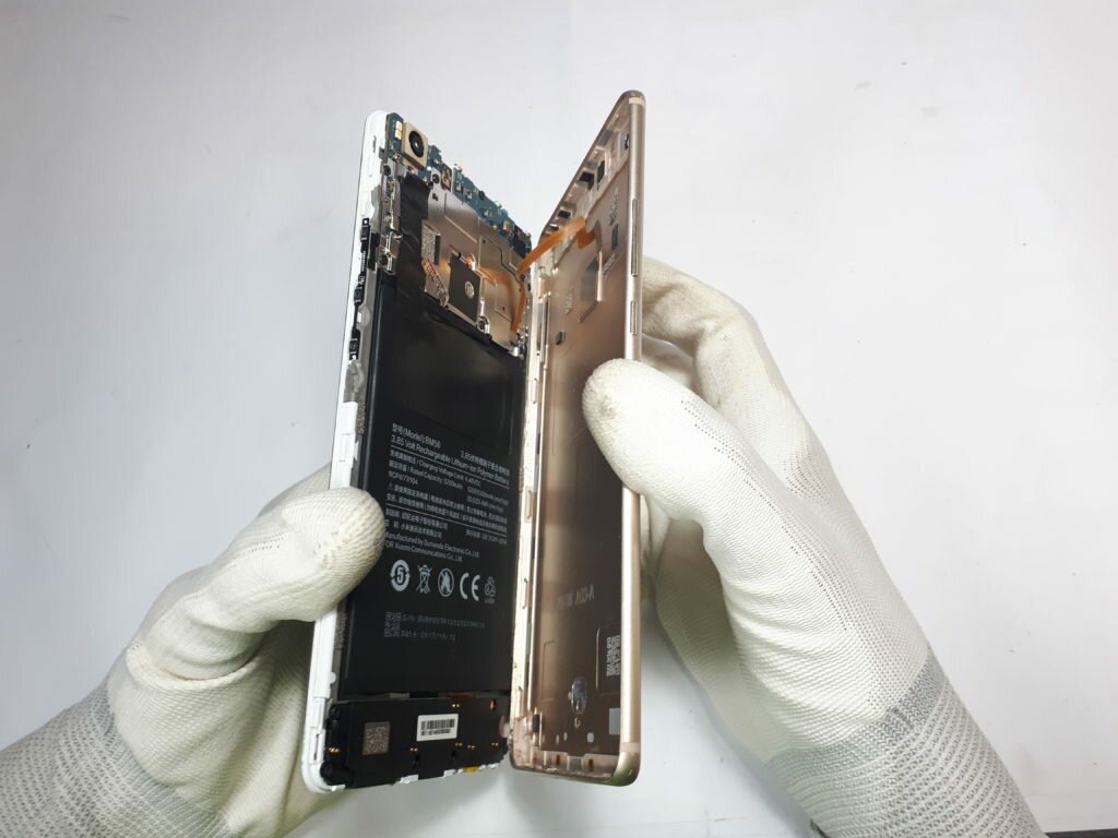 Całą naprawę zaczynamy od odkręcenia dwóch śrubek w okolicy złącza ładowania. Używamy do tego śrubokręta pentabole. Dokładnie takie samo rozwiązanie zastosowała firma Apple w swoich iPhone’ach. Marka Xiaomi stara się w niektórych aspektach bardzo upodabniać do jabłka z Cupertino. Po odkręceniu całości pamiętajmy, żeby nie zgubić tych dwóch śrubek, bo nie łatwo znaleźć tak małe elementy. Następnym etapem jest separacja pokrywy baterii. Do tej czynności używamy ostrego nożyka (skalpel GSM) lub po prostu zwykłej żyletki. Cienkie ostrze staramy się wsunąć w pierwszą lepszą szczelinę. Jeśli nie widzimy możliwości wsunięcia cienkiego ostrza, to zawsze możemy użyć przyssawki, którą delikatnie podniesiemy ekran co spowoduje powstanie wyraźnej szczeliny.