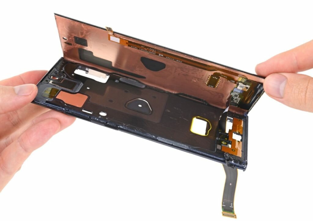 Ekran nachodząc na dokładnie wygiętą i dopasowaną ramę jest możliwy do zdemontowania, co zresztą uczyniła firma iFixit rozbierając dokładnie telefon Samsung Galaxy Note 10 Plus. Szukając wyświetlacza do tego telefonu będzie nam ciężko znaleźć sam moduł LCD bez ramii, ponieważ takowych w Polsce nie powinniśmy otrzymać. Nie oznacza to, że na świecie nie zakupimy samego modułu wyświetlacza bez ramki. Na portalu Alliexpress możemy znaleźć same LCD Samsung Galaxy Note 10 Plus bez korpusu. Trudno dywagować nad ich oryginalnym pochodzeniem, wskazujemy jednak, że takowe wyświetlacze są dostępne na rynku.