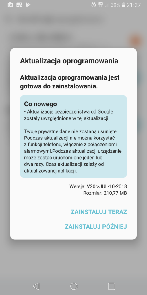 Producent LG we współpracy z Google w dniu wczorajszym wypuścił aktualizację systemową na telefon LG V30. Cała paczka nie waży zbyt dużo, a sama aktualizacja poprawia i zabezpiecza cały system Android. Tego typu akcje softwarowe dość często pomagają i stabilizują urządzenie, w tym przypadku nasz redakcyjny telefon LG V30.